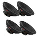 | Covering a broad frequency range from deep lows to clear mid-bass, our subwoofers ensure you don’t miss a single note. | Steel frame Endures high power levels and extended use. Better heat dissipation and maintain top-notch sound quality over time. | Superior flexibility allows the 8 inch subwoofer cone to move freely and accurately, resulting in precise and responsive bass performance. | Standard 8 inch size, easy to install in a car door, speaker holes, under seat. Perfect for replacing bad speakers or upgrading from low powered OEM ones. |