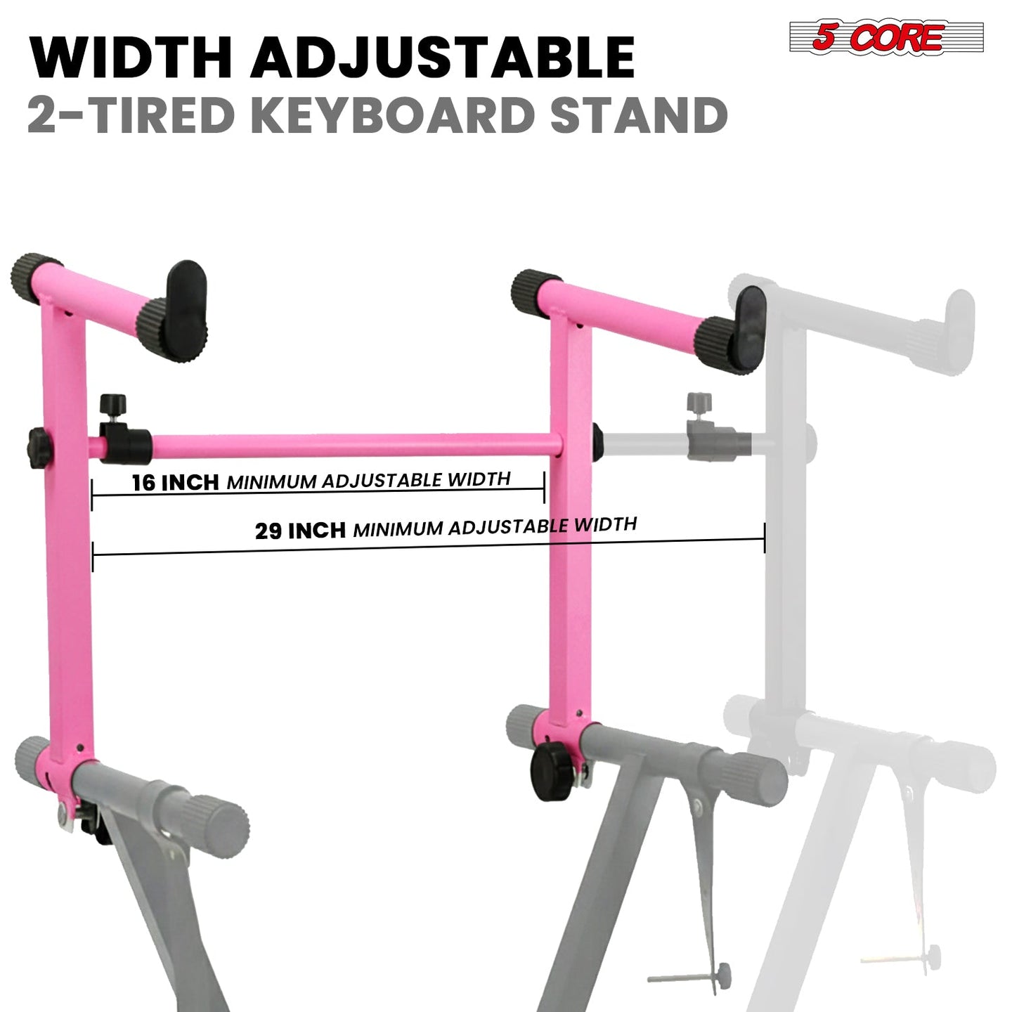 Imagine effortlessly accessing multiple keyboards, electric pianos, MIDI controllers, and more while keeping your workspace organized, clean and compact. With 5 Core's 2-tier keyboard stand, it's not just a dream- it's a reality. With its ergonomic design and adjustable title angle, you can position your instruments comfortably and securely. At 5 Core, Customer satisfaction is our priority—a proven track record of delivering the highest quality product since 1984. |