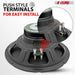 Standard 12 Inch Speaker, 129 MM depth and terminal compatibility make this speaker quick to mount in most car enclosures. |