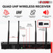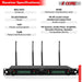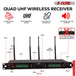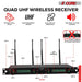 Experience unparalleled audio clarity with our wireless microphone system. Utilizing UHF technology and digital PSK modulation, these UHF cordless handheld microphone ensures stable signals across four frequencies. Its unidirectional pickup pattern and high sensitivity (-96 dBm) capture every detail of your performance. The metal construction and robust range of up to 492 feet, making this portable DJ microphone set a reliable choice for various settings.
