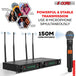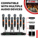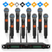 【8-Channel Wireless Microphones】UHF cordless system with a long-range operation of 50-150m and automatic connection.