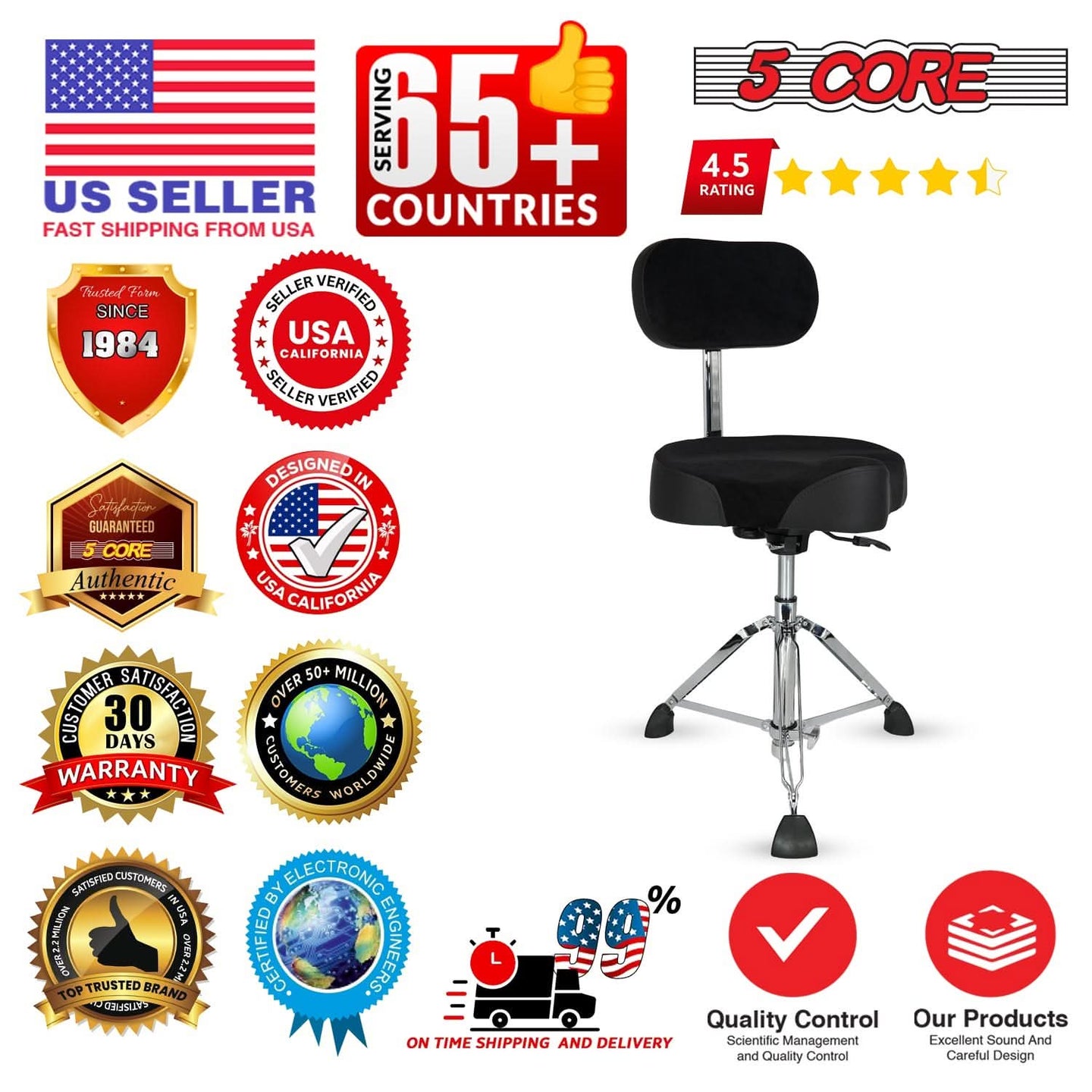 【Ergonomic Saddle Shape】The contoured seat design supports natural sitting posture, reduces lower back strain, and enhances stability—ideal for drummers who need comfort and endurance through long performances or rehearsals.