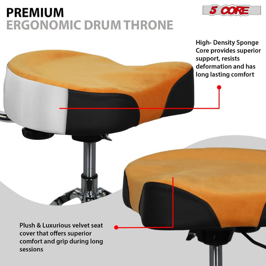 5 Core Drum Throne w Backrest 4" Padded Stool Airlift 25" Adjustable Drummer Stool 441Lb Capacity