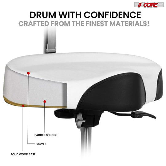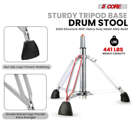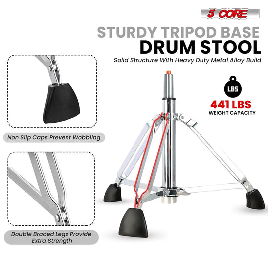 5 Core Drum Throne w Backrest 4" Padded Stool Airlift 25" Adjustable Drummer Stool 441Lb Capacity