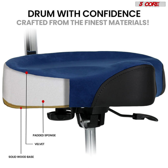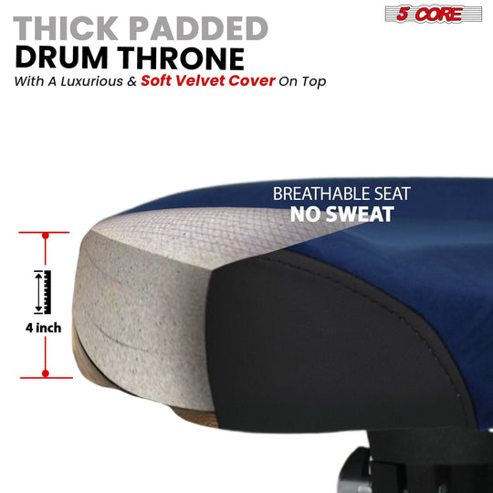 5 Core Drum Throne 4" Padded Guitar Stool Drummer Chair Adjustable Musician Seat