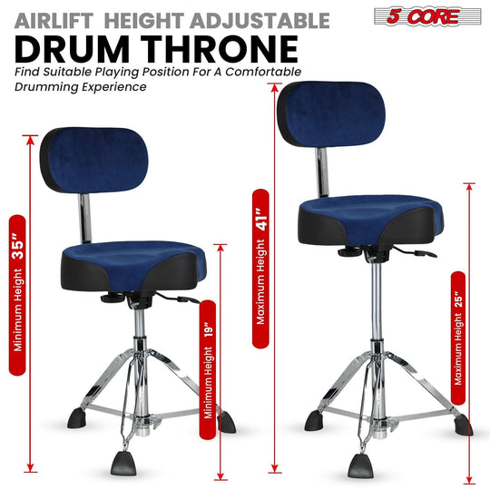 5 Core Drum Throne w Backrest 4" Padded Stool Airlift 25" Adjustable Drummer Stool 441Lb Capacity