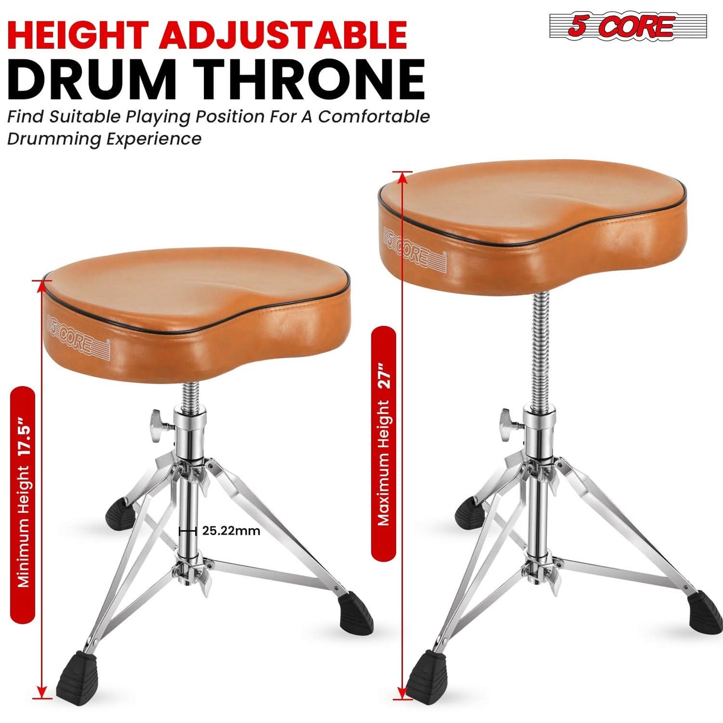 【Saddle Style Drum Throne】4" thick padded saddle seat ensures comfort, supports posture, and reduces lower back strain during long sessions.