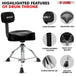 | The supportive removable backrest offers additional comfort and proper posture, play for extended periods without discomfort. | This drum stool is easy to transport, and its foldable design makes it convenient to carry to gigs, rehearsals, or lessons. | Our drum stools feature a sturdy swivel rod and multiple rivet connections, making them safer, more stable, and longer-lasting. | This drummer chair has many applications outside of drumming. It can be used as a guitar seat, DJ chair, cello chair, or music stool. |
