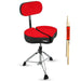 Experience lasting comfort with our thick padded drum throne, featuring a 5 inch high-density ergonomic sponge seat. The swivel height adjustable mechanism lets you rotate the seat 360 degrees. Adapts easily to different drumming setups and techniques. Height can also be changed from 19.5 to 26 inches, accommodating both adults and kids and supporting up to 441 lbs. This guitar stool is designed for durability, its heavy-duty metal frame and reinforced joints ensure lasting performance. Large anti-slip rubber caps on the tripod legs provide stability, keep the floor safe from scratches. Enjoy easy installation by simply unfolding the legs, inserting the seat and backrest, and securing them with screws. You are ready to drum. The bigger supportive backrest offers additional comfort for extended playing sessions. |