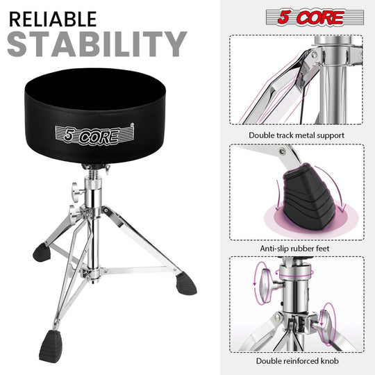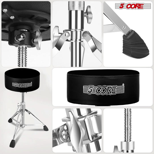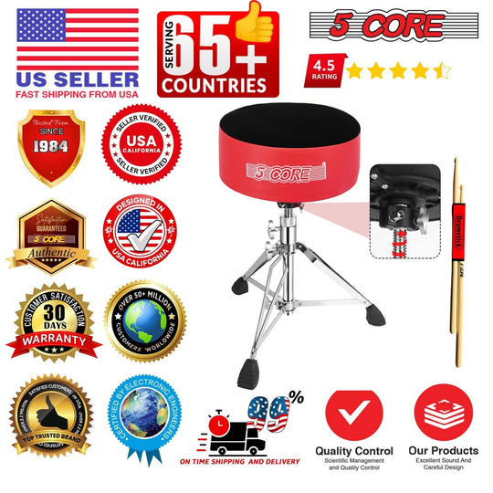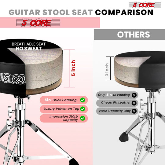 5 Core Drum Throne 5" Padded Velvet Top Guitar Stool Drummer Chair Swivel Adjustable Musician Seat