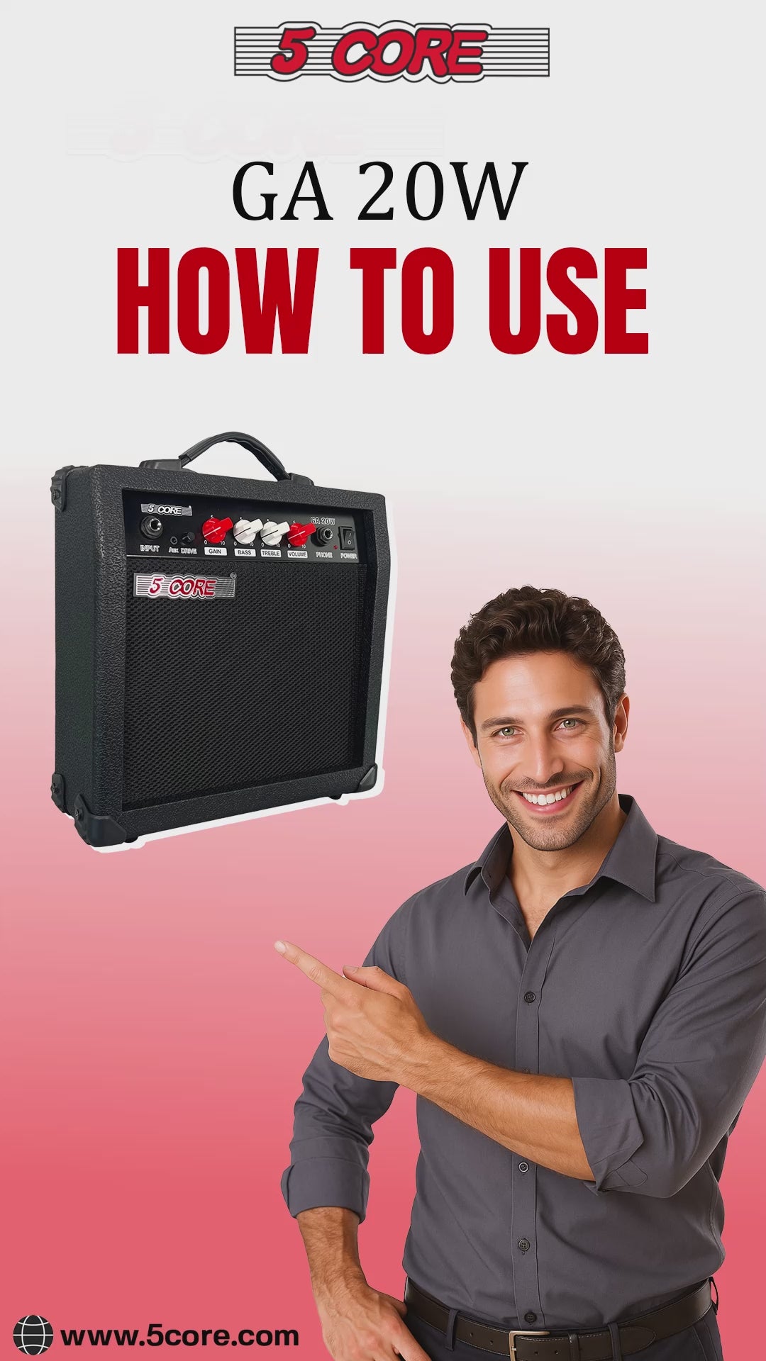 【Powerful 20 Watt Electric Guitar Amplifier】This compact electric guitar amp delivers 20W of power through a 6.5" speaker for clear, punchy sound. Ideal as a practice amplifier for electric guitar or mini bass amp.