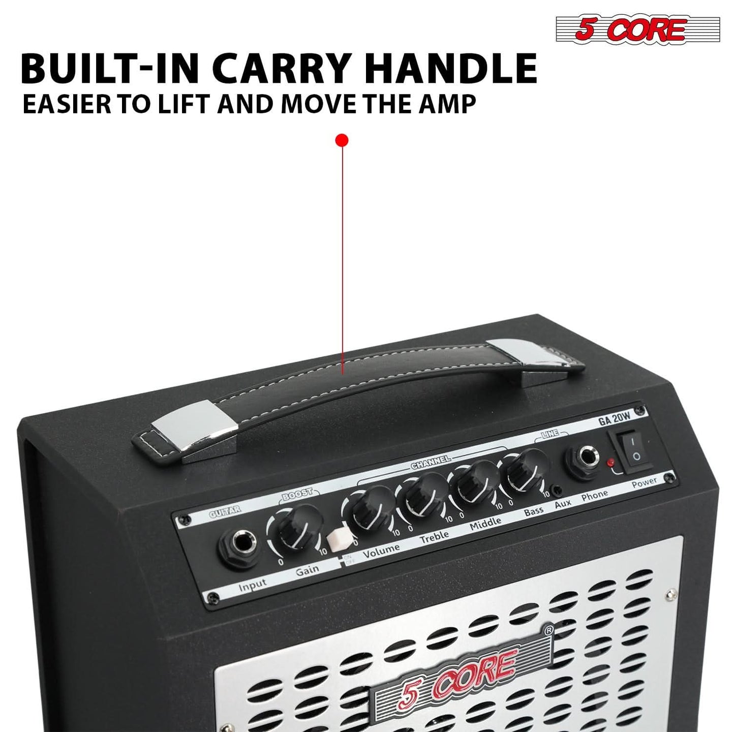 Unlock your true sound with this 20 watt electric guitar amplifier, perfect for beginners and pros alike. Whether you're practicing at home or jamming on the go, this portable guitar amp delivers clear, powerful tone through its 6.5" speaker. Easily shape your sound with gain, bass, treble, and volume controls, plus enjoy silent practice with the guitar headphone amp jack and AUX input. Built tough with rubber-protected corners, it’s a reliable mini guitar amp for daily use. Ideal as a practice amplifier for electric guitar, bass amp, or acoustic guitar amplifier—this compact amp fits every playing style. |