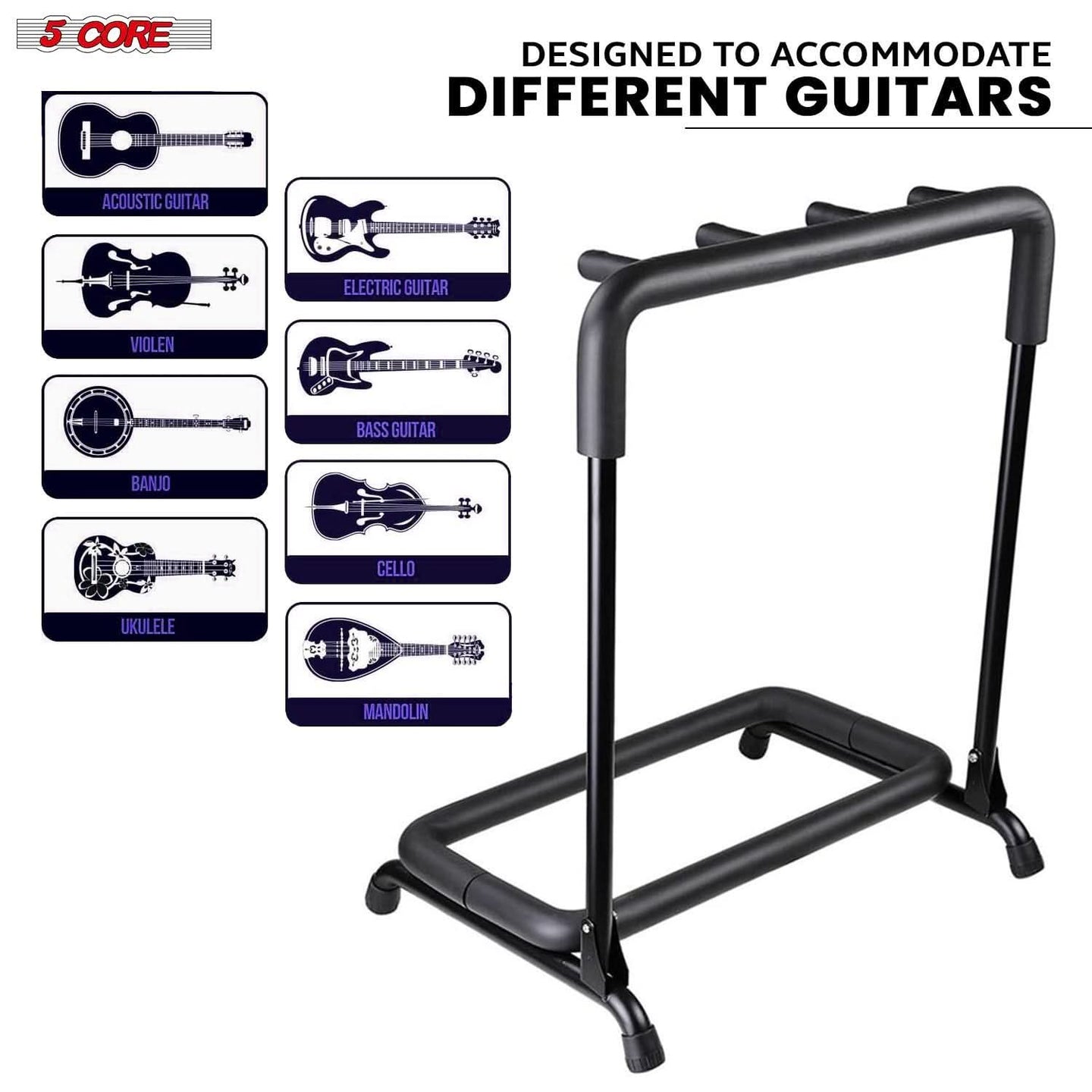 | Designed for easy transport, our foldable guitar stand multiple guitars is perfect for musicians on the go. | This guitar stands floor is easy to assemble with no special tools required, you can set it up quickly and start using it right away. | Our professional guitar rack is crafted to use space efficiently, making it ideal for small rooms or studios without compromising on capacity. |