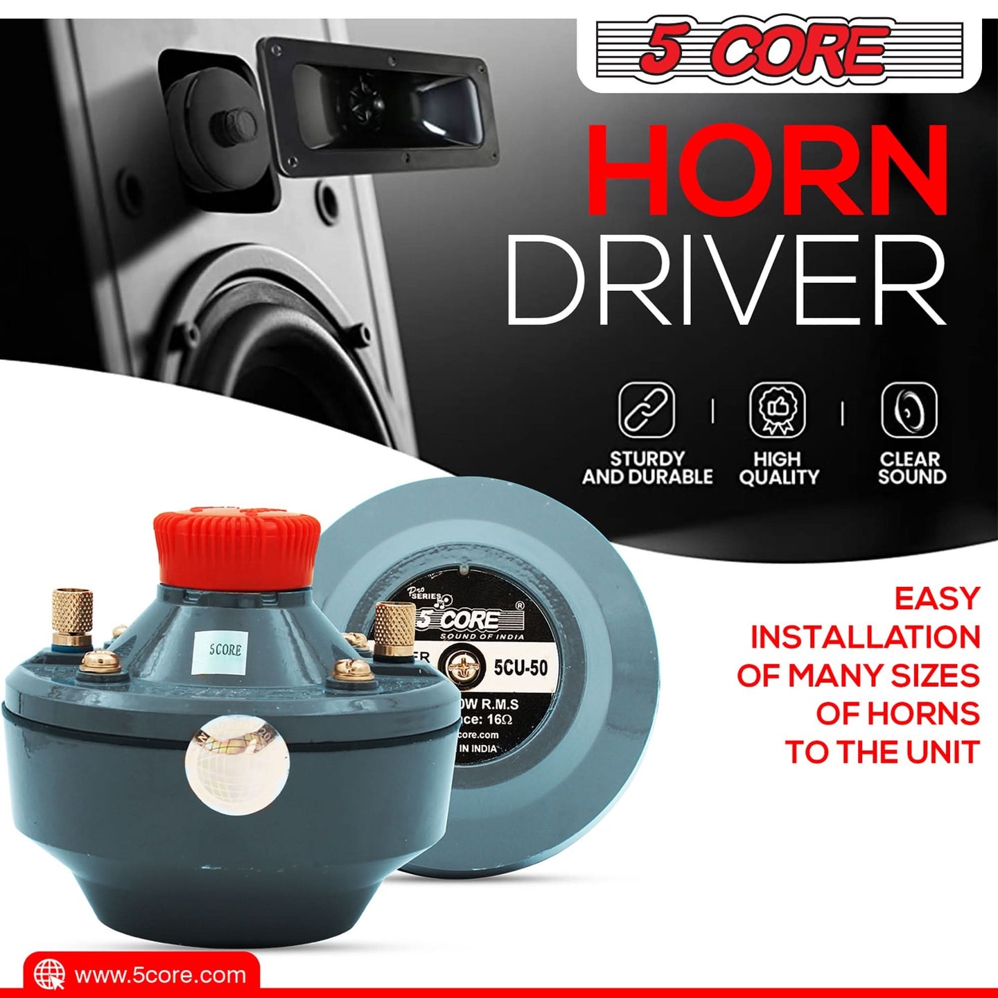 Experience unmatched audio clarity with our premium Compression Driver Tweeter, delivering a powerful 50-watt RMS output and an impressive 500-watt PMPO. With a broad frequency response of 160-7000 Hz and a 16-ohm impedance rating, this tweeter ensures dynamic sound reproduction. Constructed from durable aluminum and featuring a robust Y 30 Ferrite Magnet, the exit phenolic driver's built to last. Perfect for outdoor applications, it boasts weatherproof capabilities and universal 18 T.P.I threading for easy installation. Weighing just 3.76 lbs, this compression diaphragm offers a lightweight yet potent solution for enhancing your audio setup. Elevate your sound experience today with our superior Compression Driver Tweeter. |