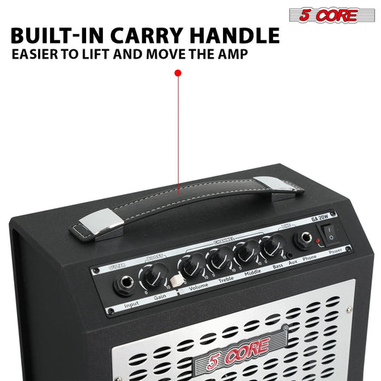 5 Core Guitar Amp 20W Electric Portable Mini Amplifier w Built in 6.5" Speaker Aux Headphone Jack