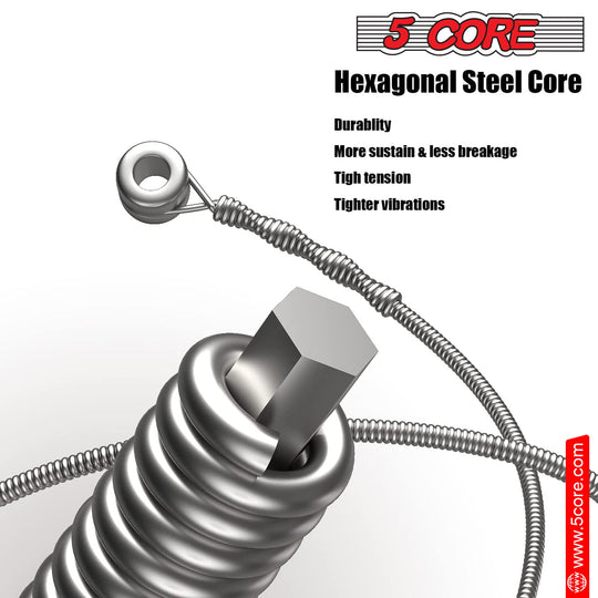 5 Core Acoustic Guitar 6 String Set Medium Gauge Steel Carbon Core Bright Powerful Tone Heavy Duty