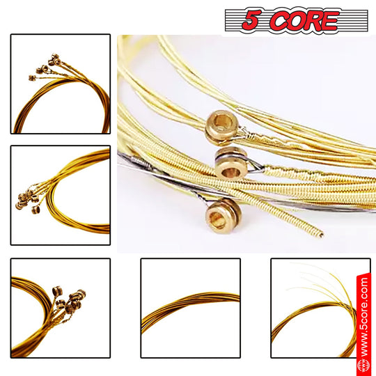 5 Core Acoustic Guitar 6 String Set Light Gauge Steel Carbon Core Bright Powerful Tone Heavy Duty