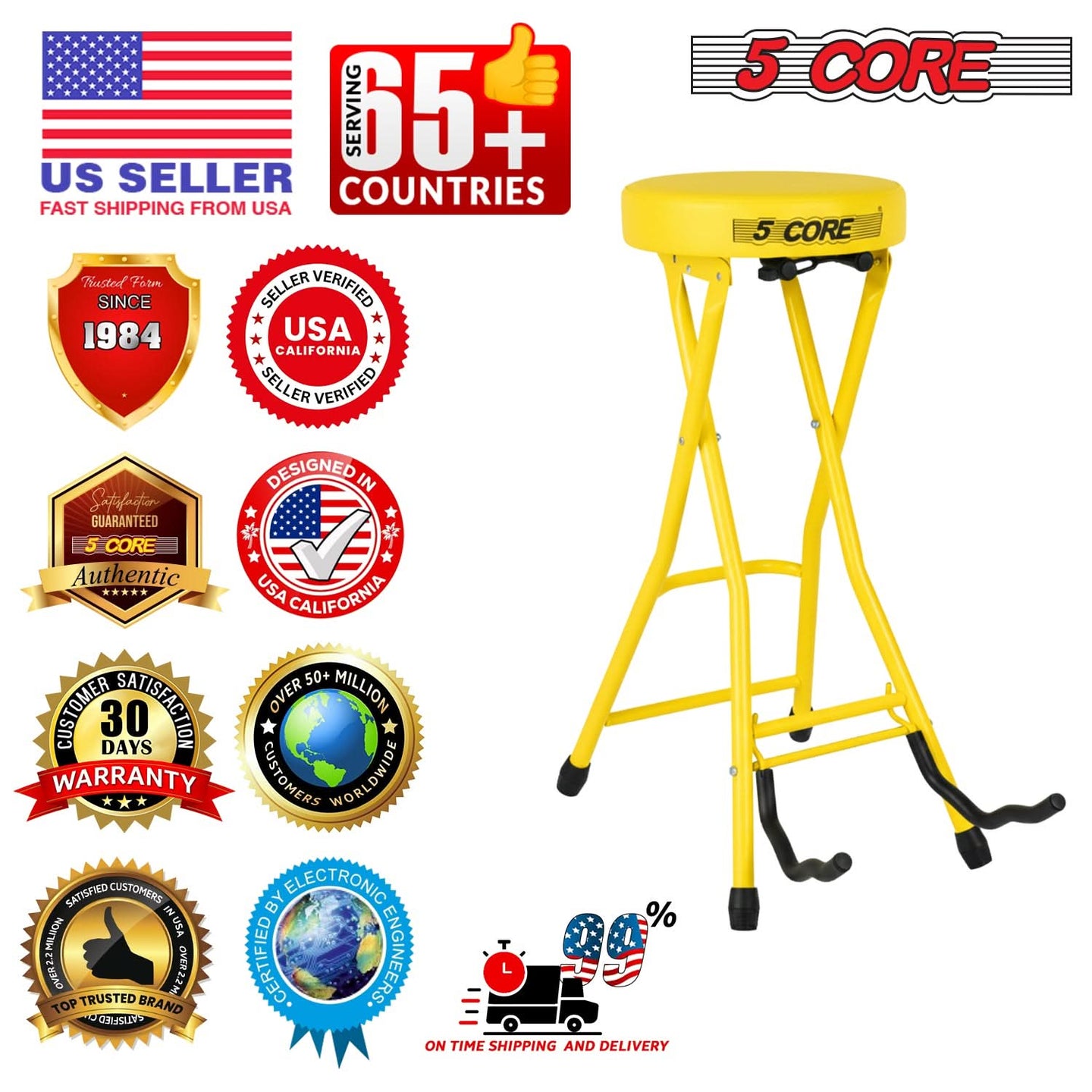 【Heavy Duty Build】Made from a durable iron frame with reinforced joints, offers an impressive 350 lb load capacity. This guitar seat offers a sturdy feel and reliable support. Ideal for players who want a tall folding stool that can handle daily use.