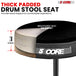 【Comfortable Drum Throne Seat】 This drum throne features a 12 inch wide seat with 3 inch thick padding—designed for long drumming or practice sessions. The soft leather top makes this a comfortable chair for playing guitar or drums.