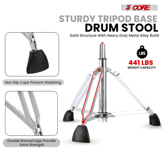 5 Core Drum Throne w Backrest 4" Padded Stool Airlift 25" Adjustable Drummer Stool 441Lb Capacity