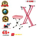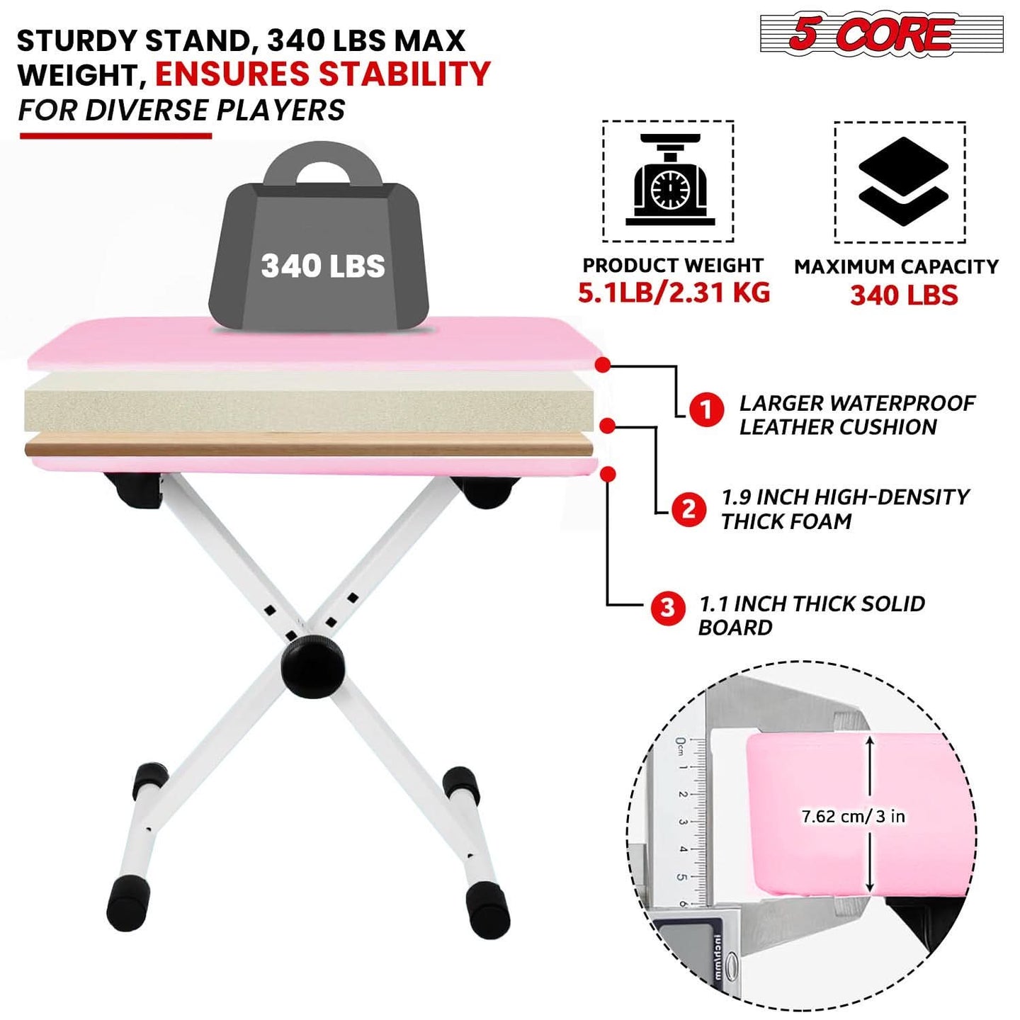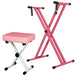 5Core Keyboard Stand Double X Style Adjustable Piano Riser + Keyboard Piano Bench PINK