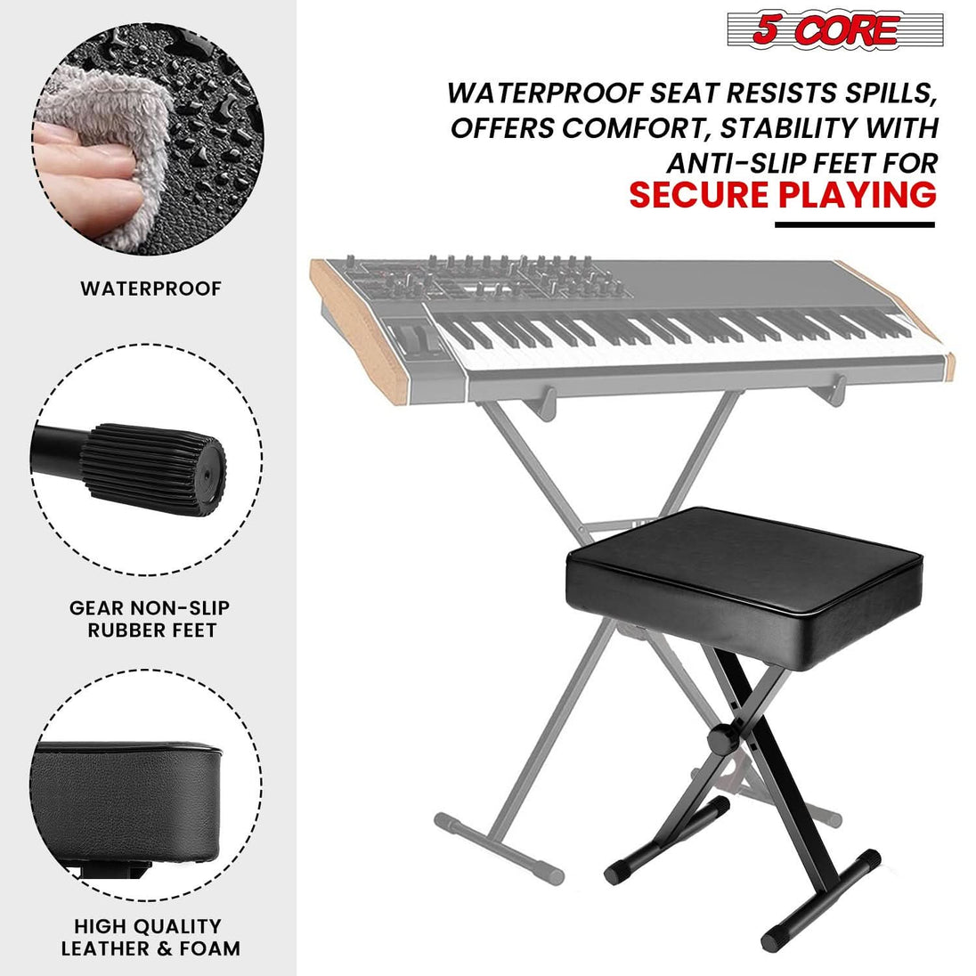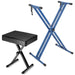 5Core Keyboard Stand Double X Style Adjustable Piano Riser BLUE + Keyboard Piano Bench BLACK