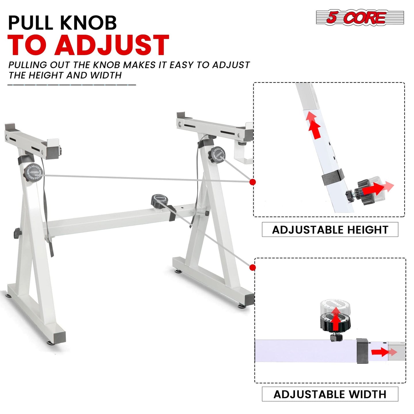 【Adjustable Keyboard Stand】Height adjusts from 22.5" to 38.5" and width from 21.5" to 36.5" for a perfect fit.