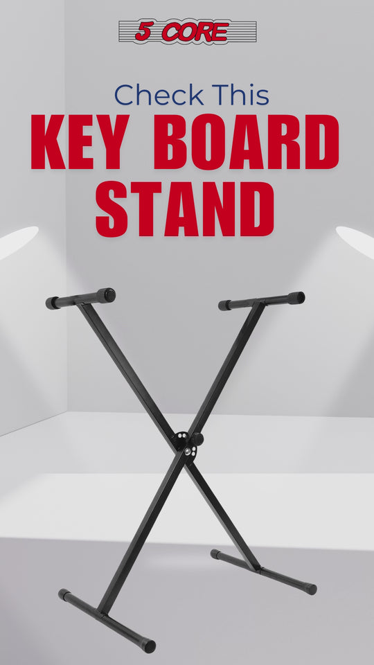 5Core Keyboard Stand Single X Style Adjustable Lift Piano Riser For 49 To 88 Keys BLACK