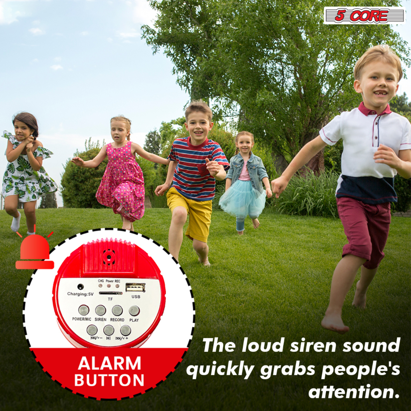 5 Core megaphone speaker mini bullhorn, designed to make your voice heard with clarity and precision! Delivers a robust 30W of power, ensuring your message carries across any crowd. Easily adjust the volume to suit your needs and record up to 8 seconds of your speech for repeated playback. Activate the alarm/siren mode for emergencies or attention grabbing situations. The built-in mic in the portable megaphone offers versatility in sound projection. With an impressive 800 yards voice projection range, rechargeable megaphone bull horn, battery (included), this powerful product is your ultimate communication tool for any event or occasion. |