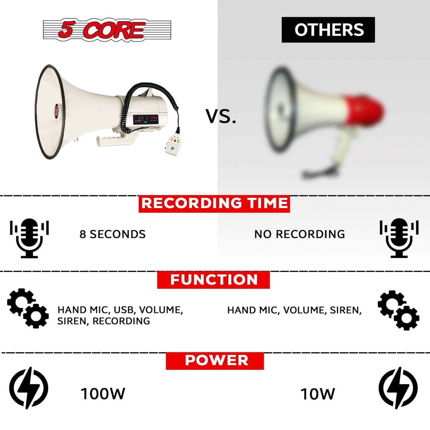 【Loud Megaphone】– Impressive 100W power amplifies your voice up to 2000 yards, ensuring you're heard clearly without straining.