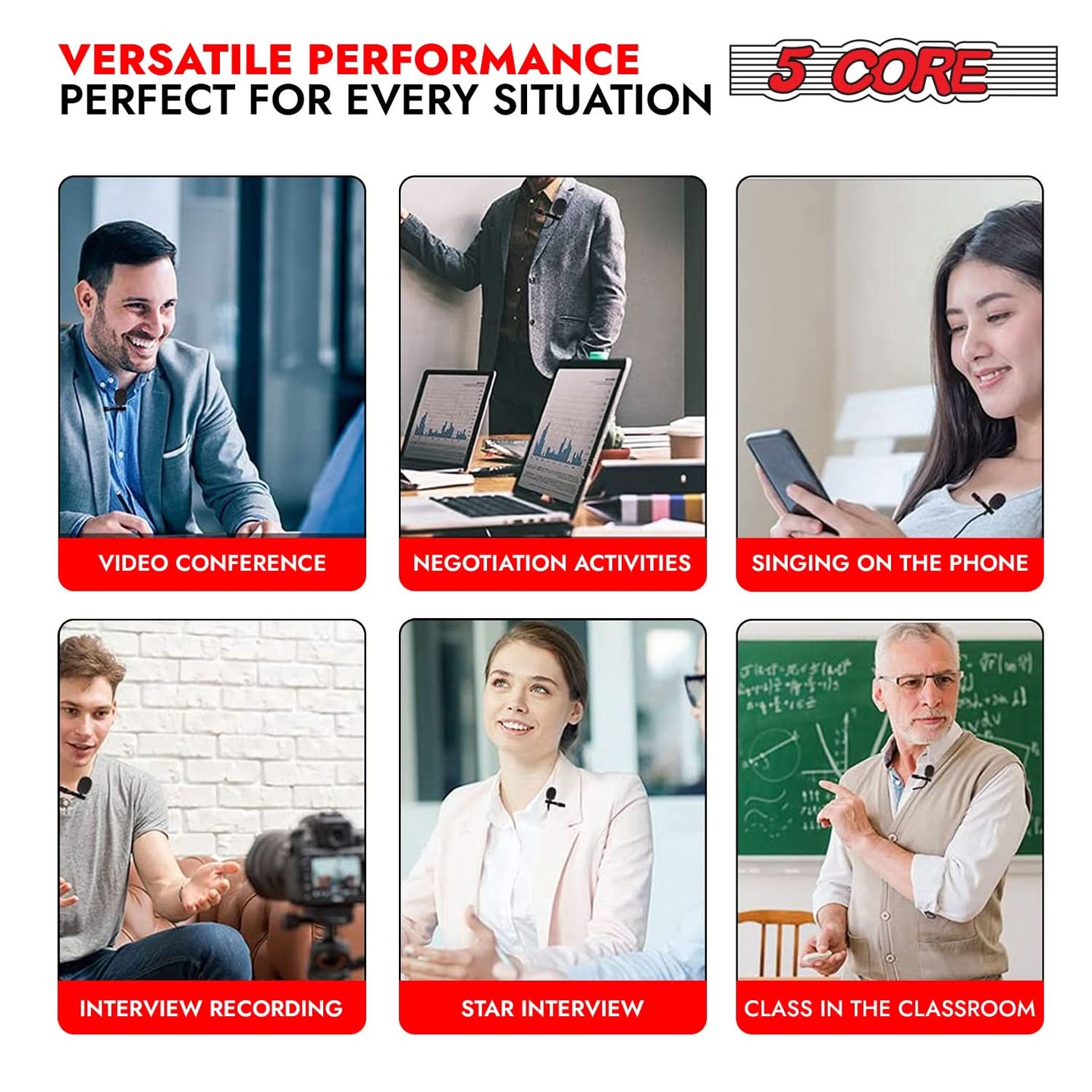 5 Core Microphone 2Pcs Lavalier Mic Wearable Omnidirectional Condenser 3.5mm Body Microfono