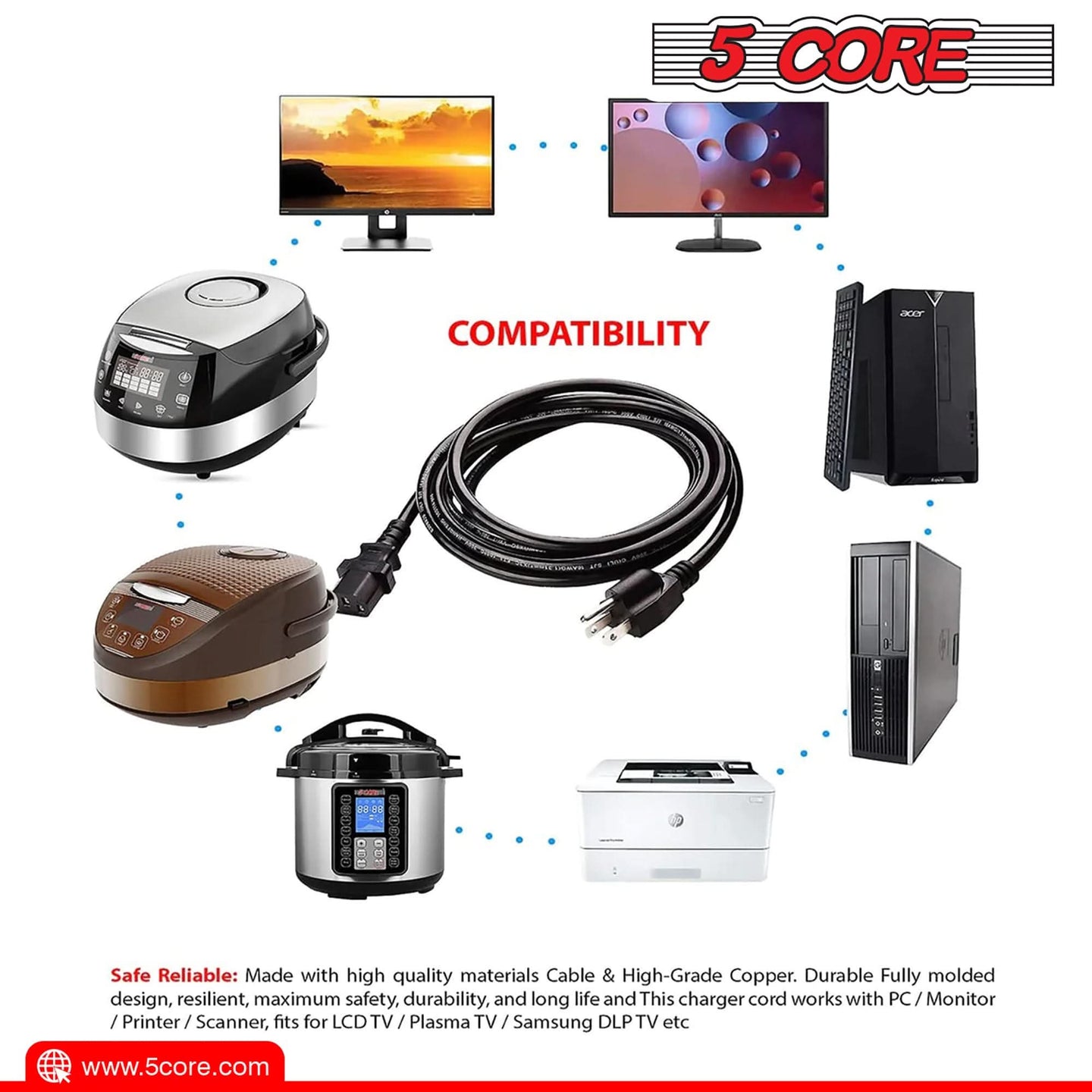 【Universal Power Cord】 Features a C13 connector, ensuring a perfect fit for computers, monitors, printers, and other devices.