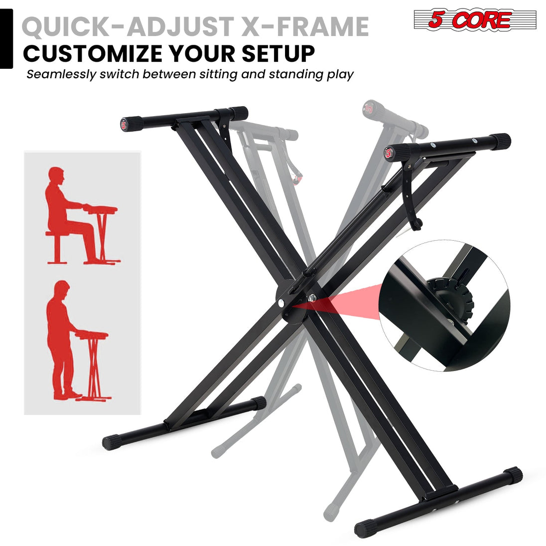 【Quick Release Height Adjustment】 Easily adjust your keyboard stand from 7.25" to 39" using the one hand trigger quick release system! Ideal for sitting or standing while playing your keyboard, digital piano, or MIDI.