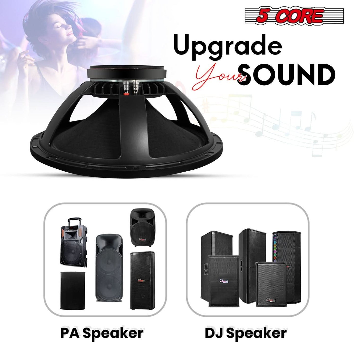 5Core 18 Inch Subwoofer Speaker 1200W Max 8Ohm Full Range Replacement DJ Sub Woofer