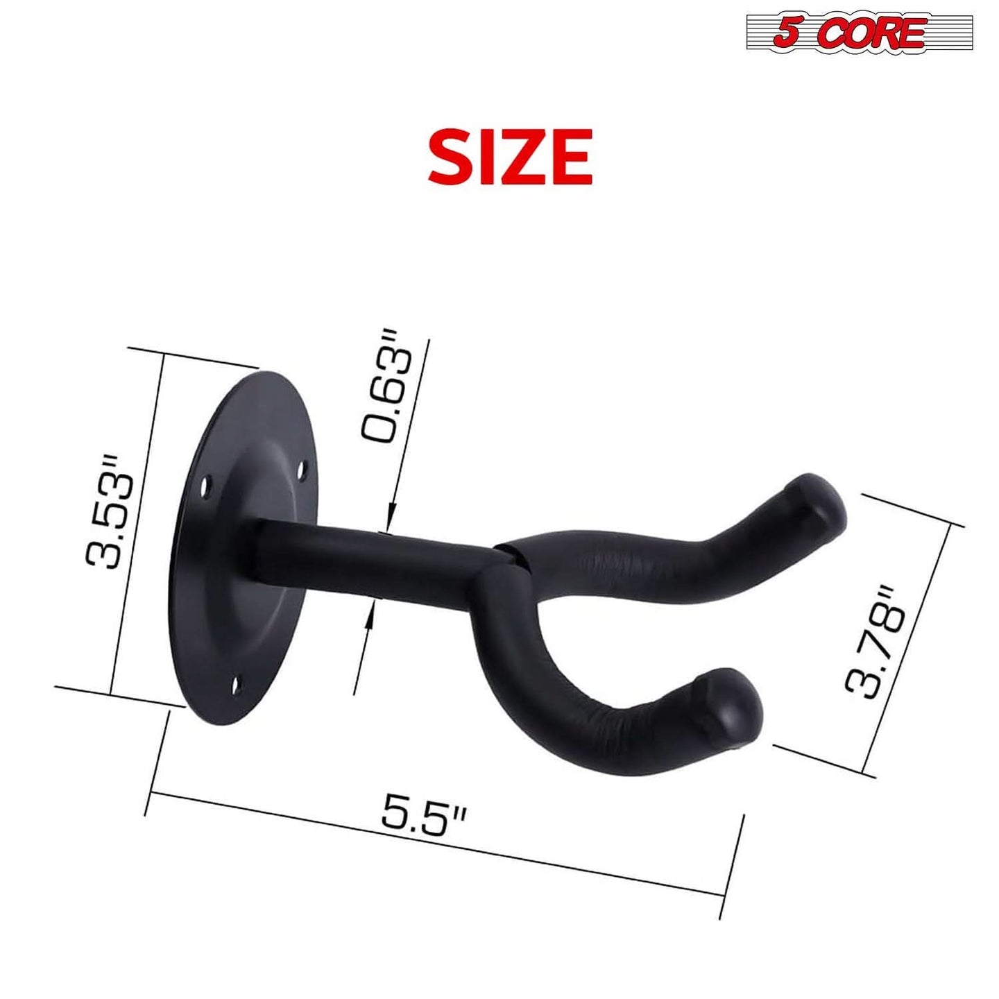 Ensure your guitar is secure and stylishly displayed with our sturdy guitar wall mount, made from high-quality materials for maximum support. Soft cushioned arms protect your instrument from scratches, while the adjustable fit accommodates various neck sizes and shapes. The deep cradle design prevents falls, and installation is a breeze with the included hardware. This versatile guitar hooks for wall suits electric, acoustic, ukulele, and bass guitars. Its sleek design complements any decor, making it a perfect addition to your room or studio. 5 Core guitar holder wall mount is reliable, elegant, and secure. |