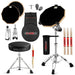 Elevate your drumming experience with this drum stool and practice pad combo, designed for comfort, stability, and improving performance. The 3-inch-high-density padded seat on the throne provides lasting comfort, while the sturdy metal alloy frame with anti-slip rubber caps ensures secure setup. Adjustable heights for the throne are 16.5" and 21.5", and the snare drum stand is 23 to 31 inches, making the drum set ideal for all ages. The durable practice pad delivers realistic drumhead rebound for effective practice sessions. Compact and portable, the kit includes a special backpack for easy transport. Perfect for drummers of all skill levels, this combo is your go-to solution for practice and performance needs. |